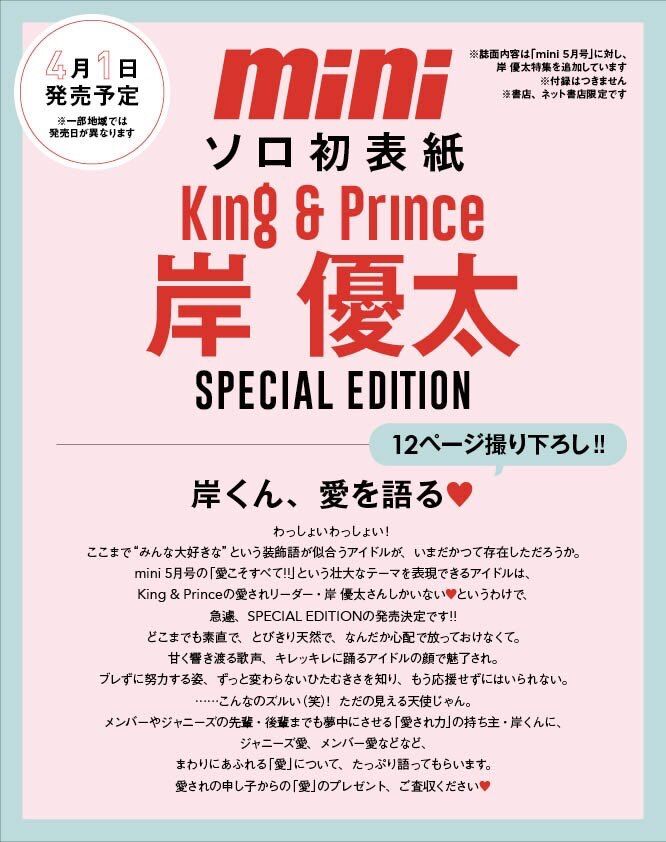 4/01(金)MINI 5月号◆増刊付録なし版表紙 岸優太12P